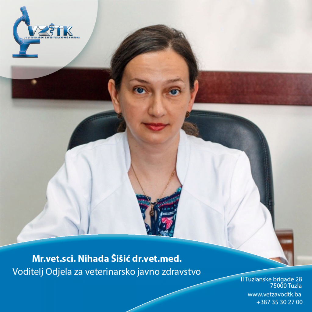 Voditelj Odjela za veterinarsko javno zdravstvo: Mr.vet.sci. Nihada Šišić, dr.vet.med.